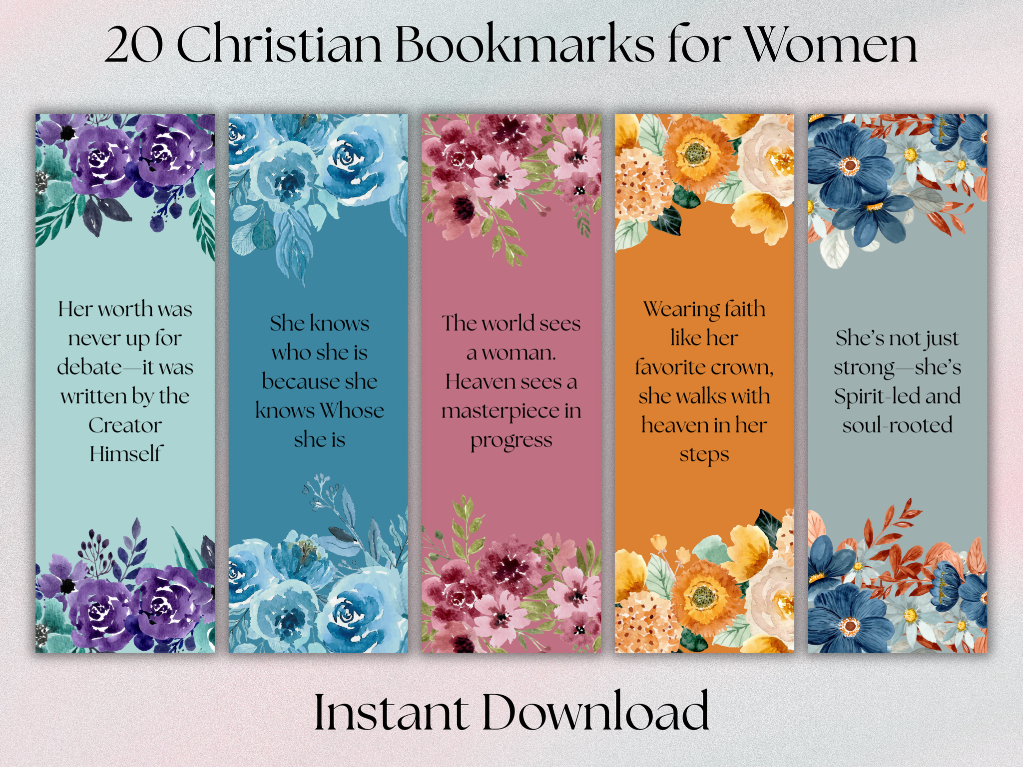 Printable Faith-Based Bookmarks for Women – 20 Uplifting Christian Quotes for Bible Study, Journaling & Encouragement