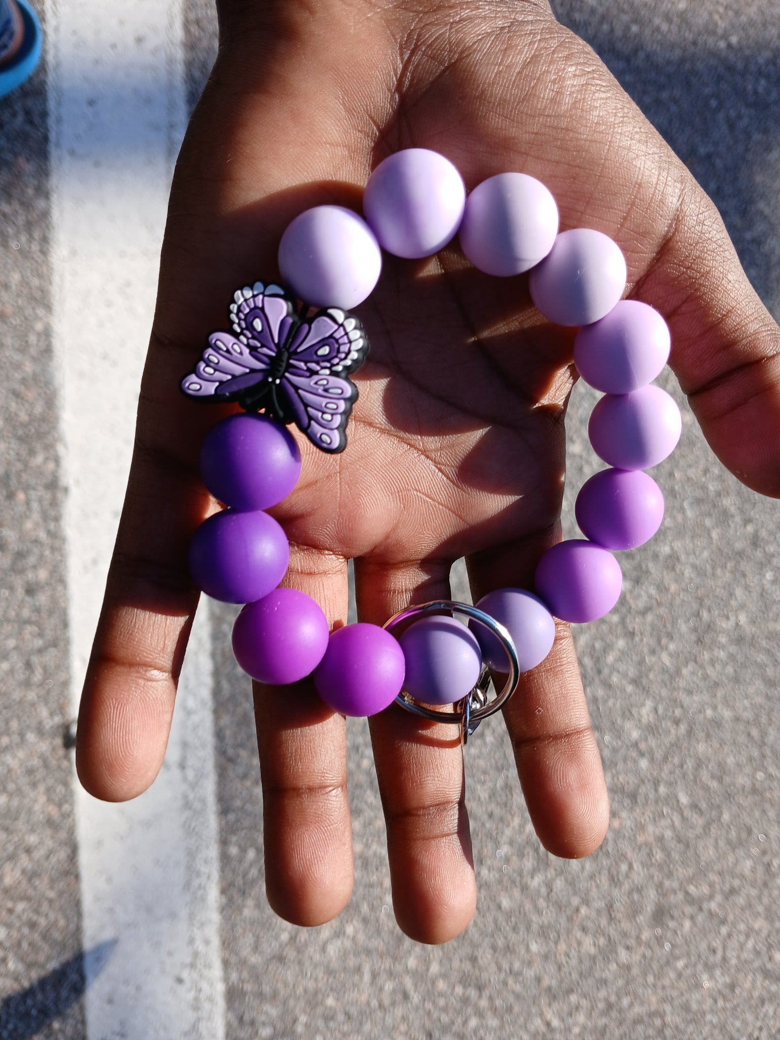 This gorgeous ombre beaded wristlet keychain features soft-touch silicone beads in calming purple hues, finished with a stunning butterfly charm for a pop of personality. Whether you’re running errands, heading to class, or dashing to church, this wristlet keeps your essentials handy while making a statement.